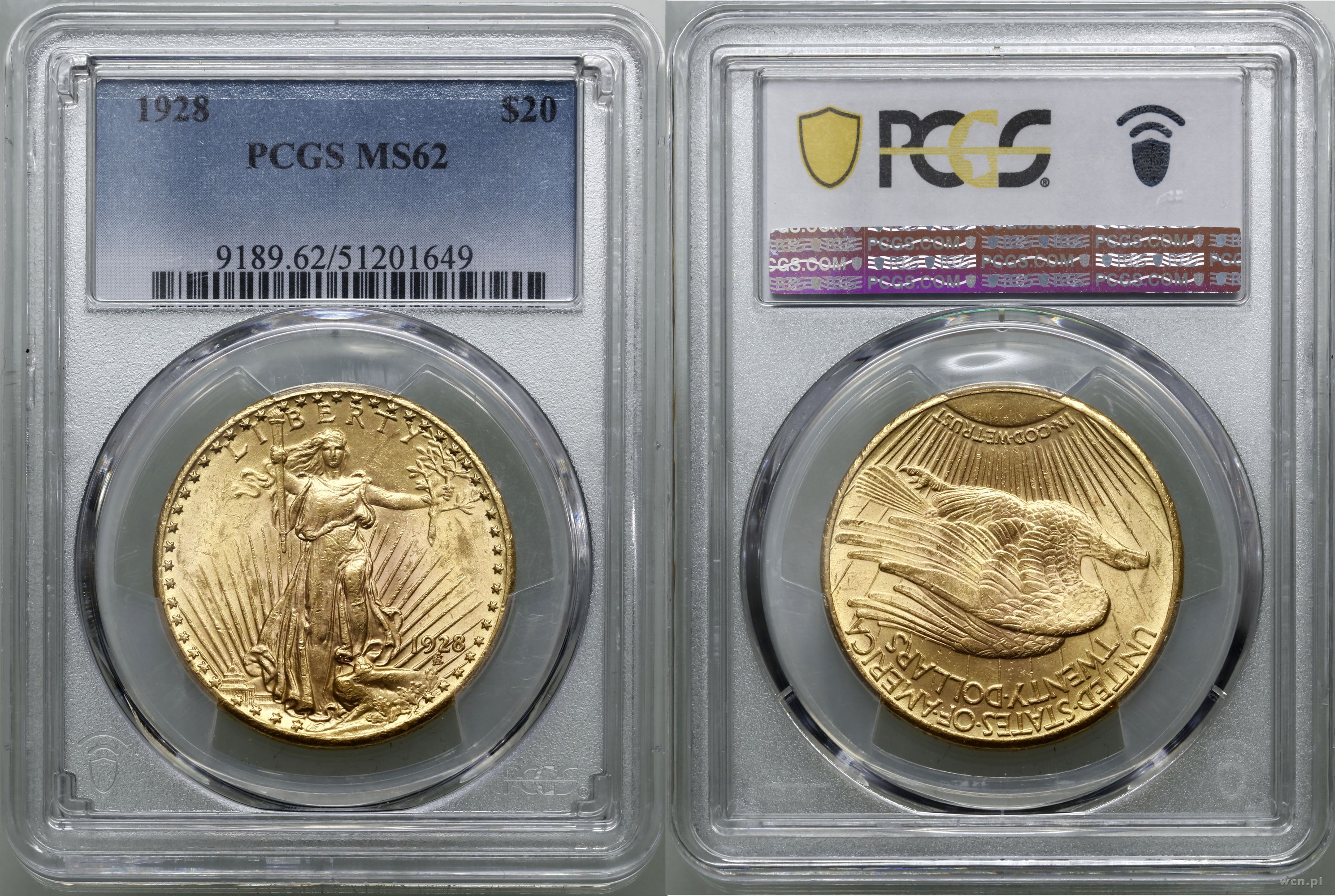 Opis: | USA, 20 dolarów 1928, Filadelfia, typ Saint Gaudens, z motto na rewersie, złoto ok. 33.43 g, próby 900, nakład: 8.816.000 szt., pięknie zachowane, w opakowaniu firmy PCGS nr 9189.62/51201649 z oceną MS62 |