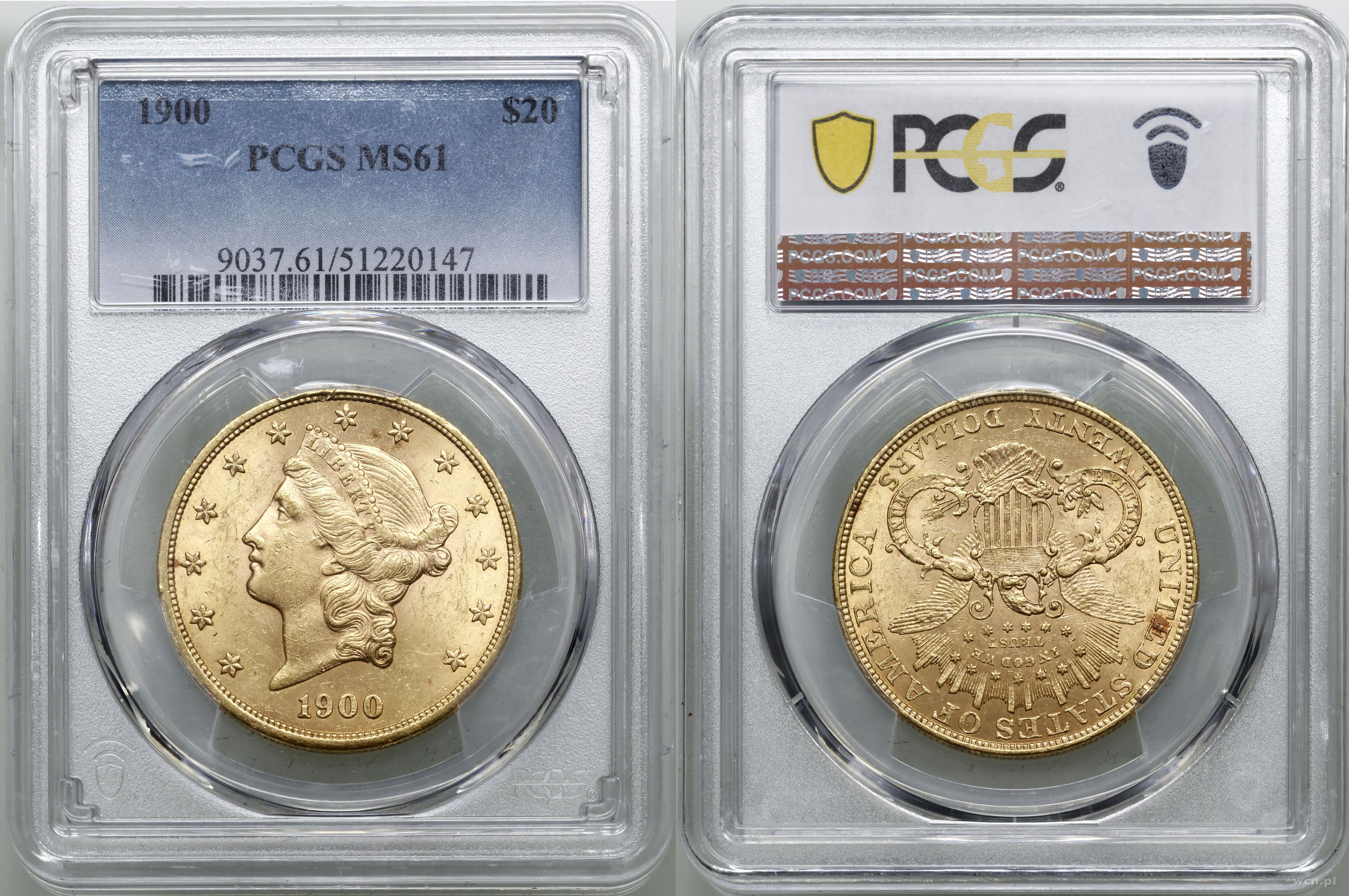 Opis: | USA, 20 dolarów 1900, Filadelfia, typ Liberty Head, z motto na rewersie i TWENTY DOLLARS, złoto ok. 33.43 g, próby 900, nakład: 1.874.460 szt., pięknie zachowane, w opakowaniu firmy PCGS nr 9037.61/51220147 z oceną MS61 |