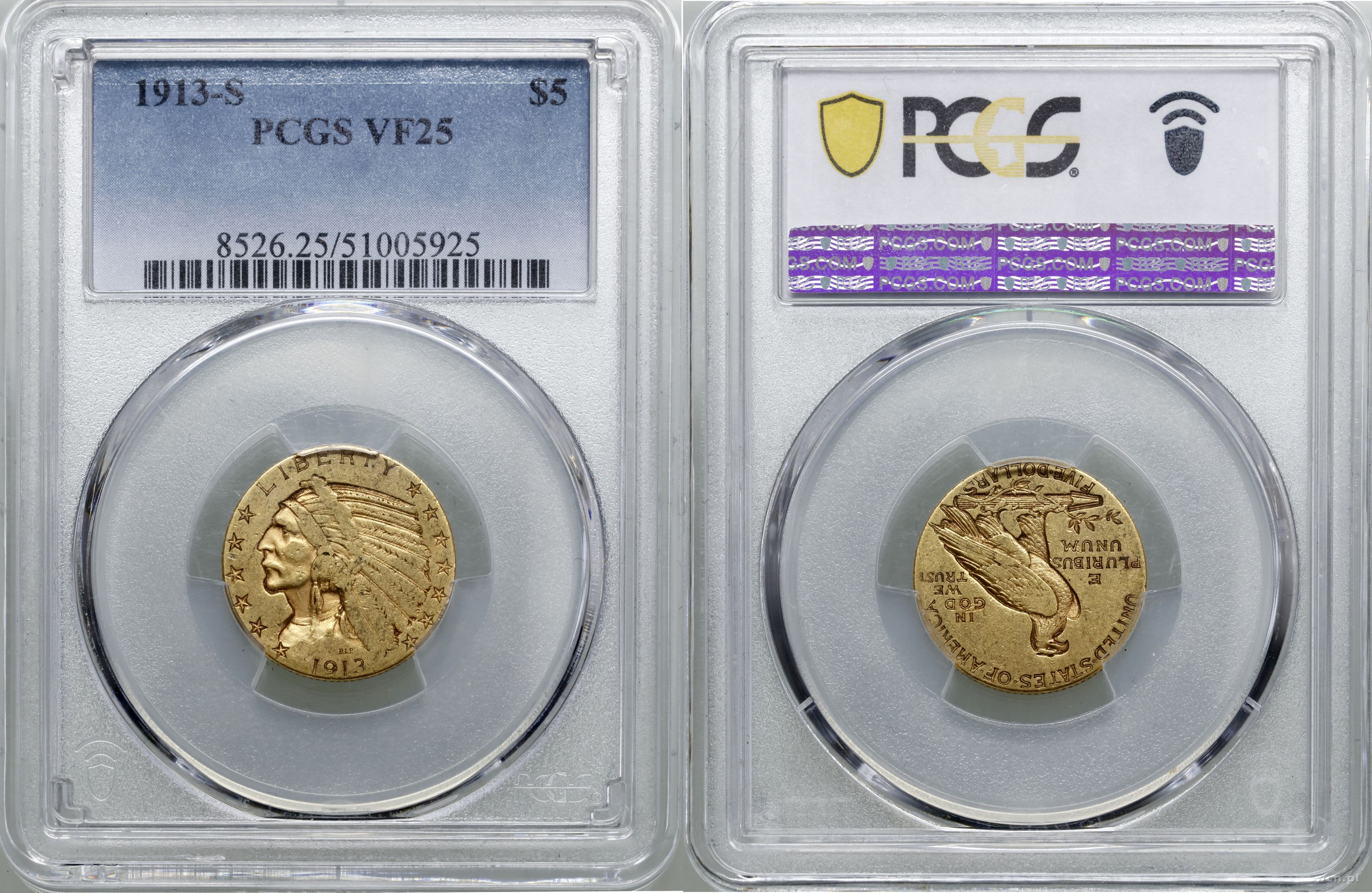 | Opis: | USA, 5 dolarów 1913 S, San Francisco, typ Indian Head, złoto ok. 8.36 g, próby 900, nakład: 408.000 szt., w opakowaniu firmy PCGS nr 51005925 z oceną VF25 |