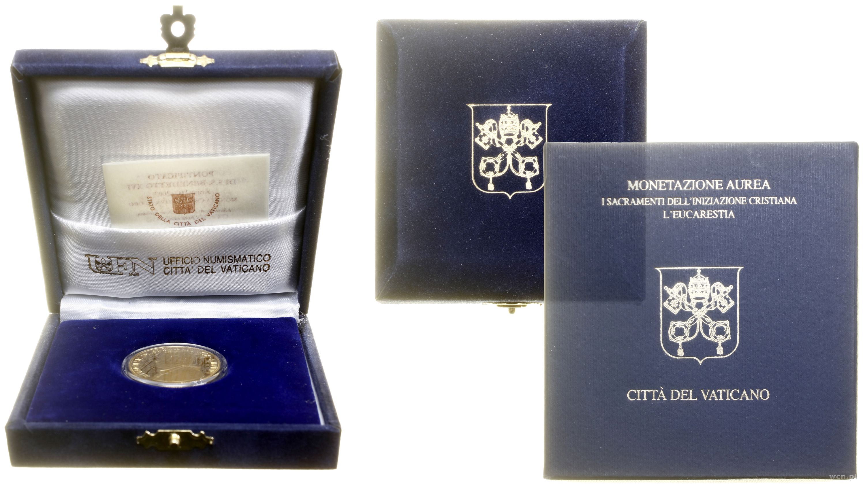 | Opis: | Europa, 50 euro 2007 R, Rzym, The Sacraments of Christian Initiation - The Eucharist, złoto ok. 15.0 g, próby 917, nakład: 3.424 szt., wyśmienicie zachowana moneta w oficjalnym pudełku CItta del Vaticano, z certyfikatem |