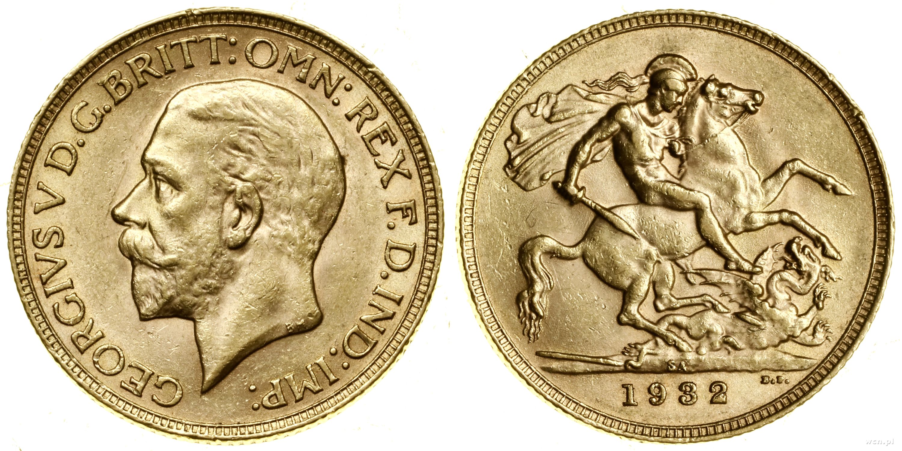 1 funt (1 sovereign) 1932 SA, Pretoria, z obwódką na awersie, złoto 7.98 g, próby 916, nakład: 1.067.000 szt. |