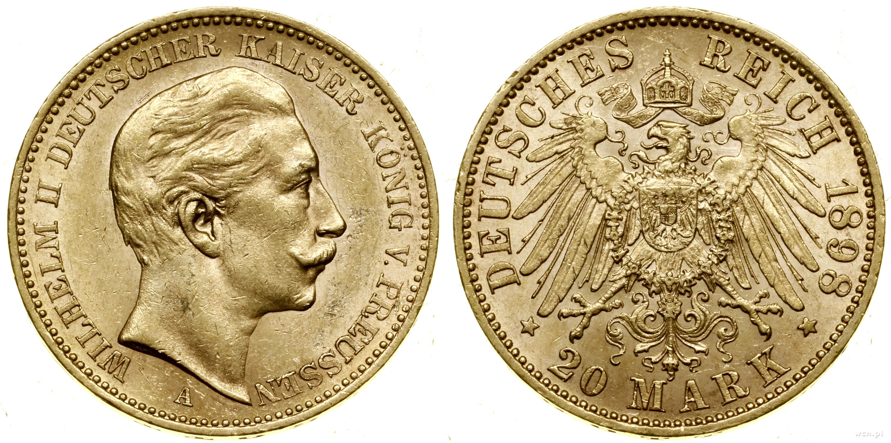 20 marek 1898 A, Berlin, złoto 7.96 g, próby 900, nakład: 6.542.219 szt. |