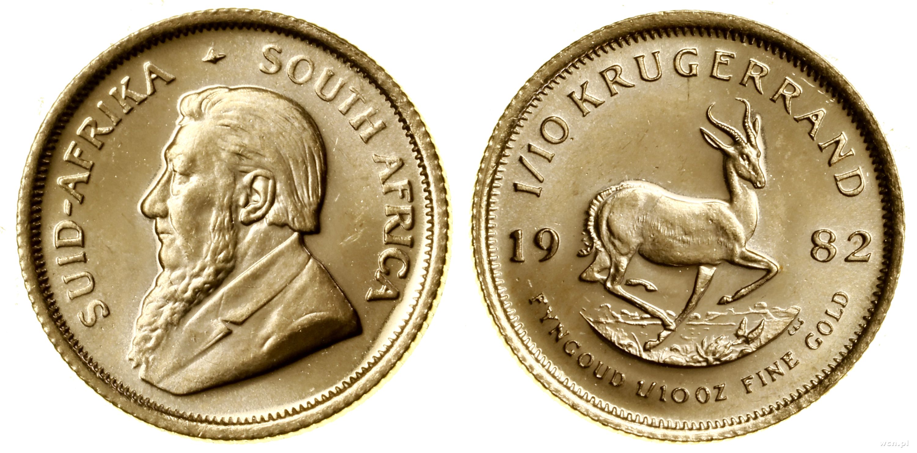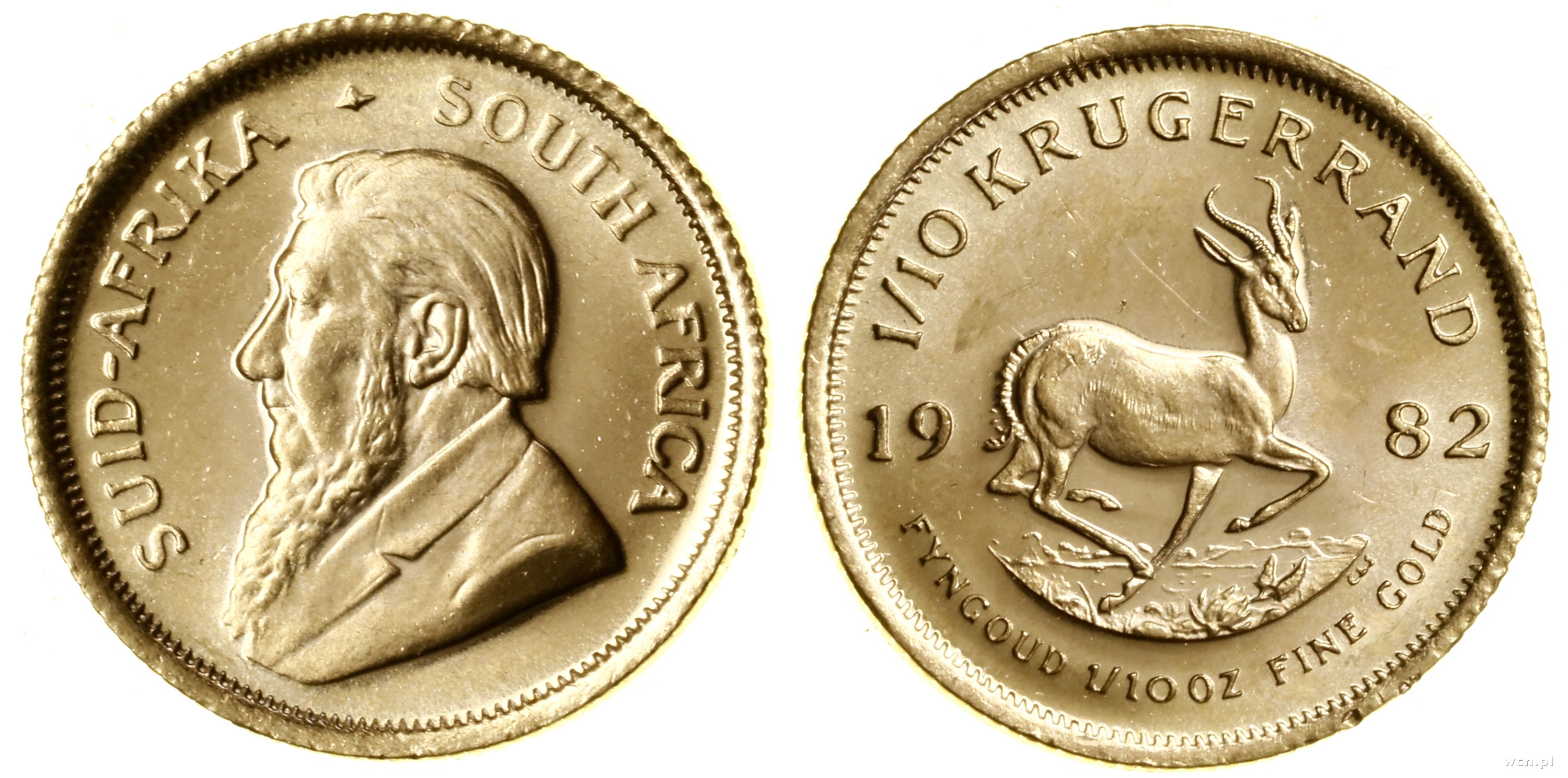 1/10 krugerranda = 1/10 uncji 1982, Pretoria, złoto 3.40 g, próby 916, nakład: 1.053.539 szt., wyśmienite |