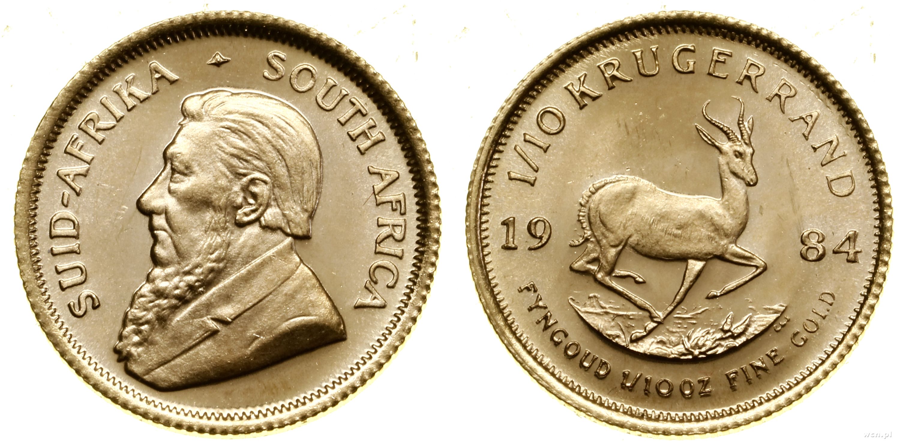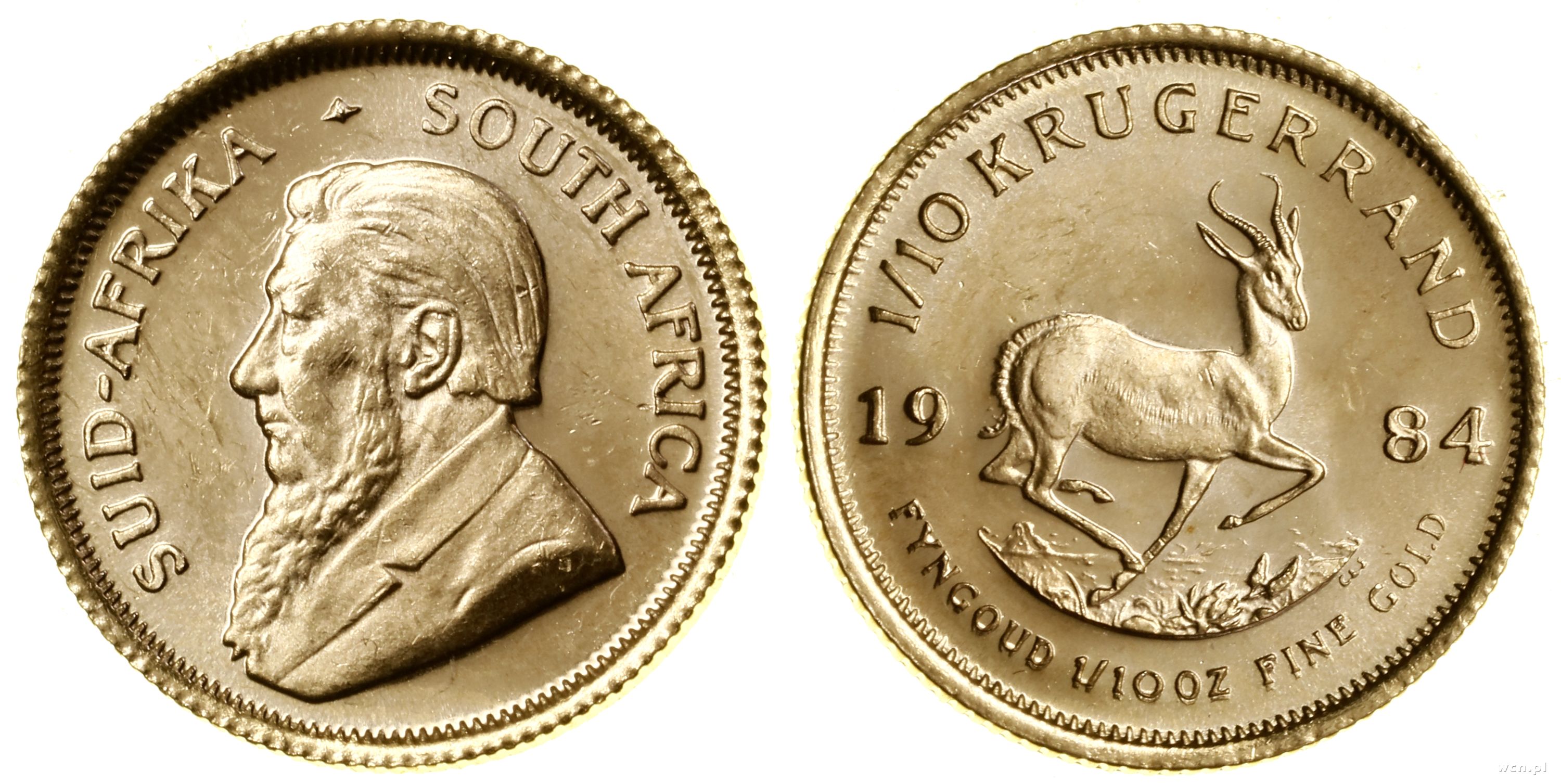 1/10 krugerranda = 1/10 uncji 1984, Pretoria, złoto 3.40 g, próby 916, nakład: 885.250 szt., wyśmienite |