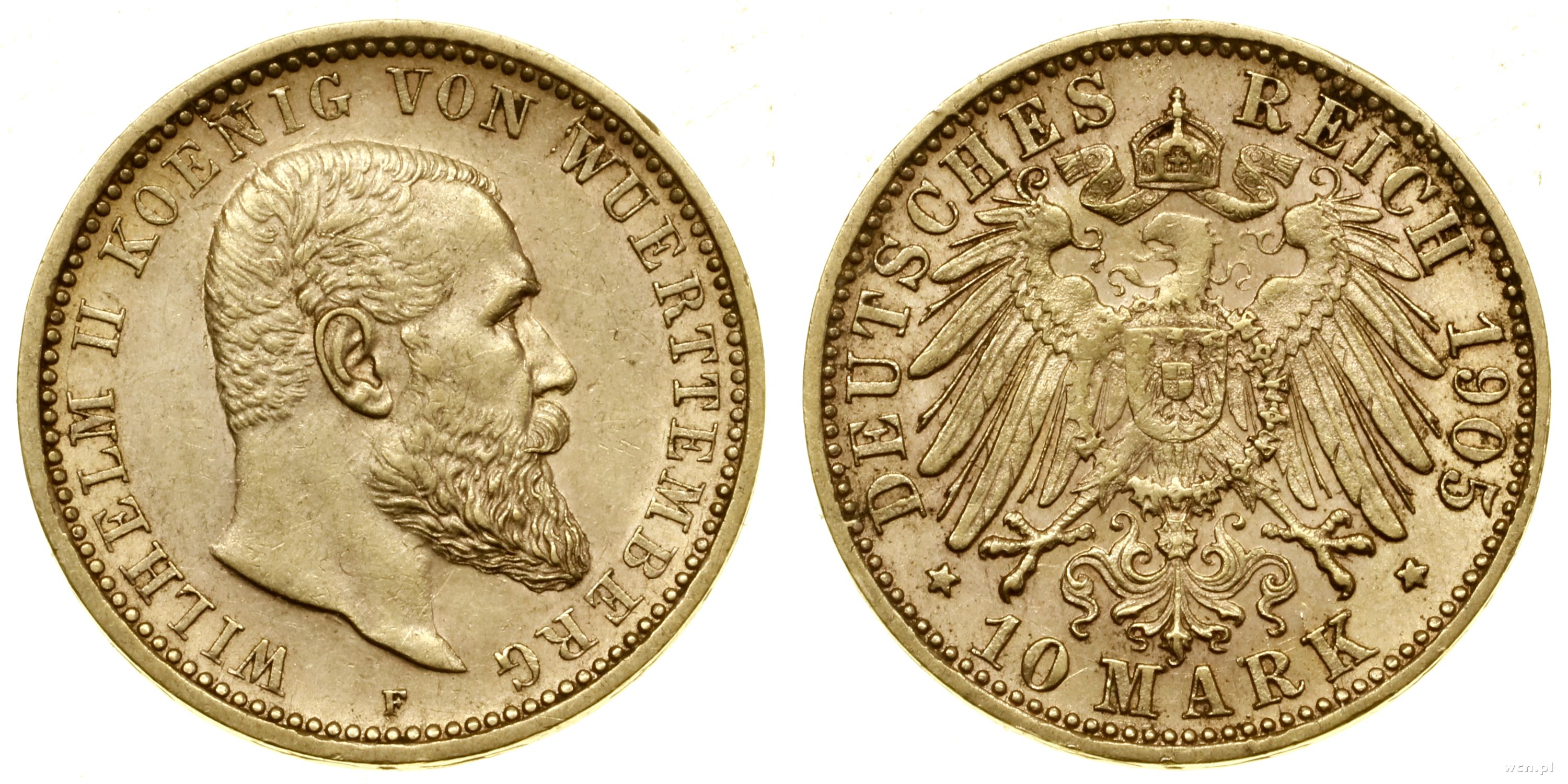 |  | 10 marek 1905 F, Stuttgart, złoto 3.97 g, próby 900, nakład: 199.812 szt., rzadszy rocznik | II | 2 050 zł | 23-10-2025 |