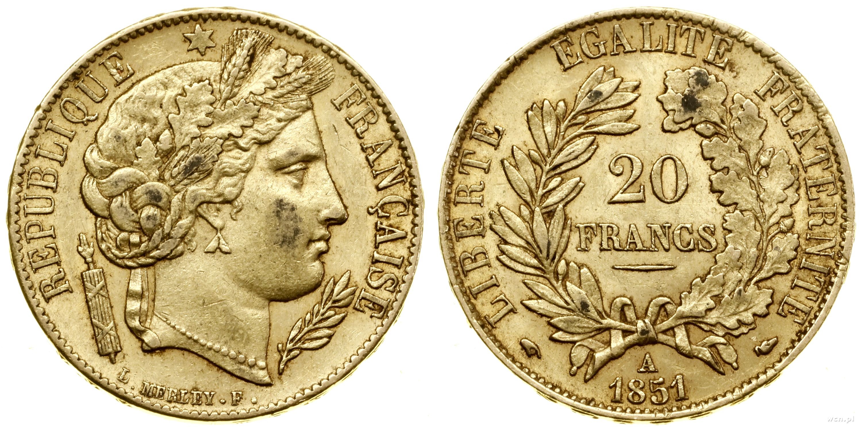 Francja, 20 franków, 1851 A