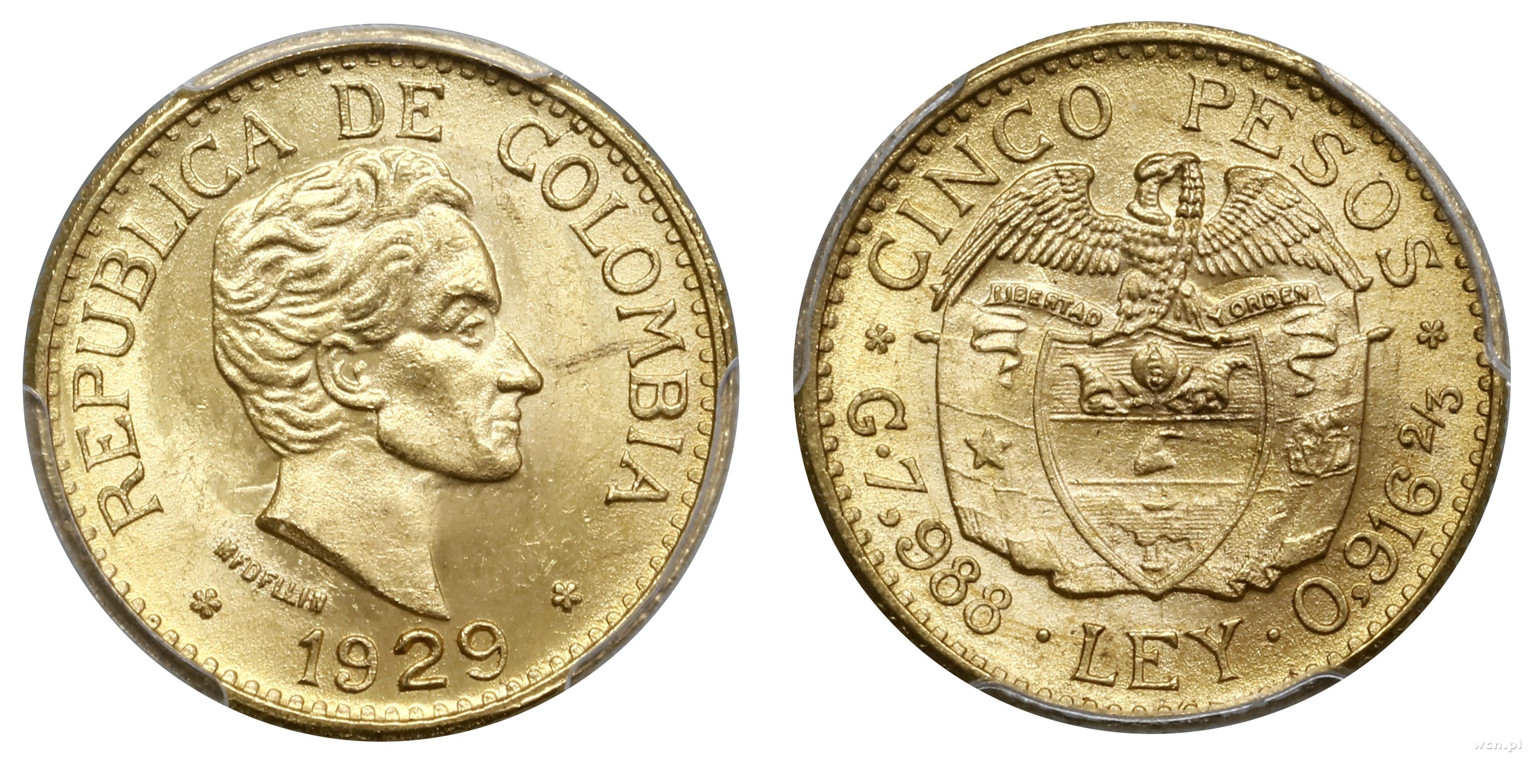 Kolumbia, 5 peso, 1929