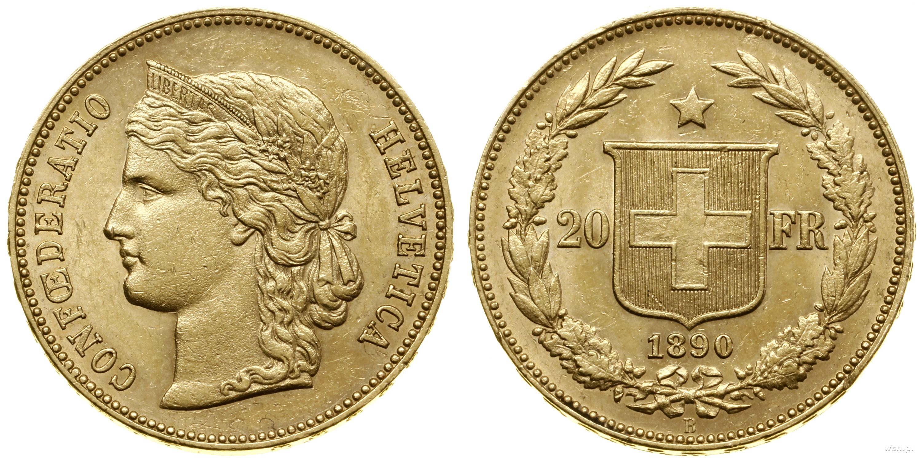 Szwajcaria, 20 franków, 1890 B