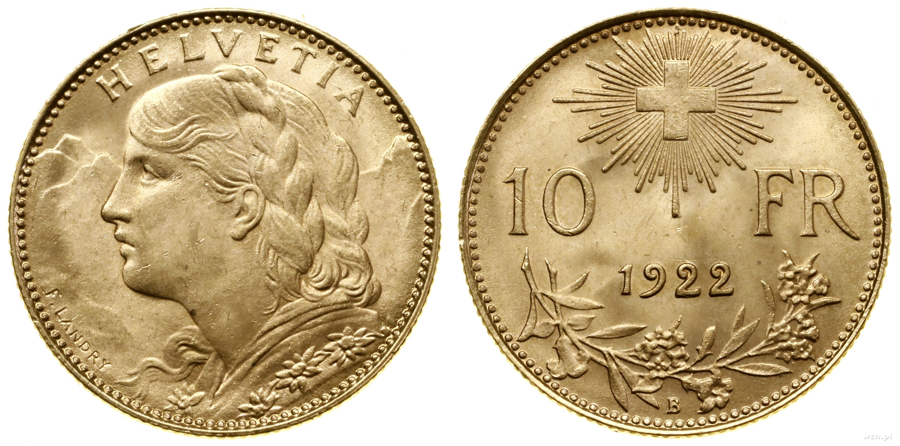 | Szwajcaria, 10 franków, 1922 B |