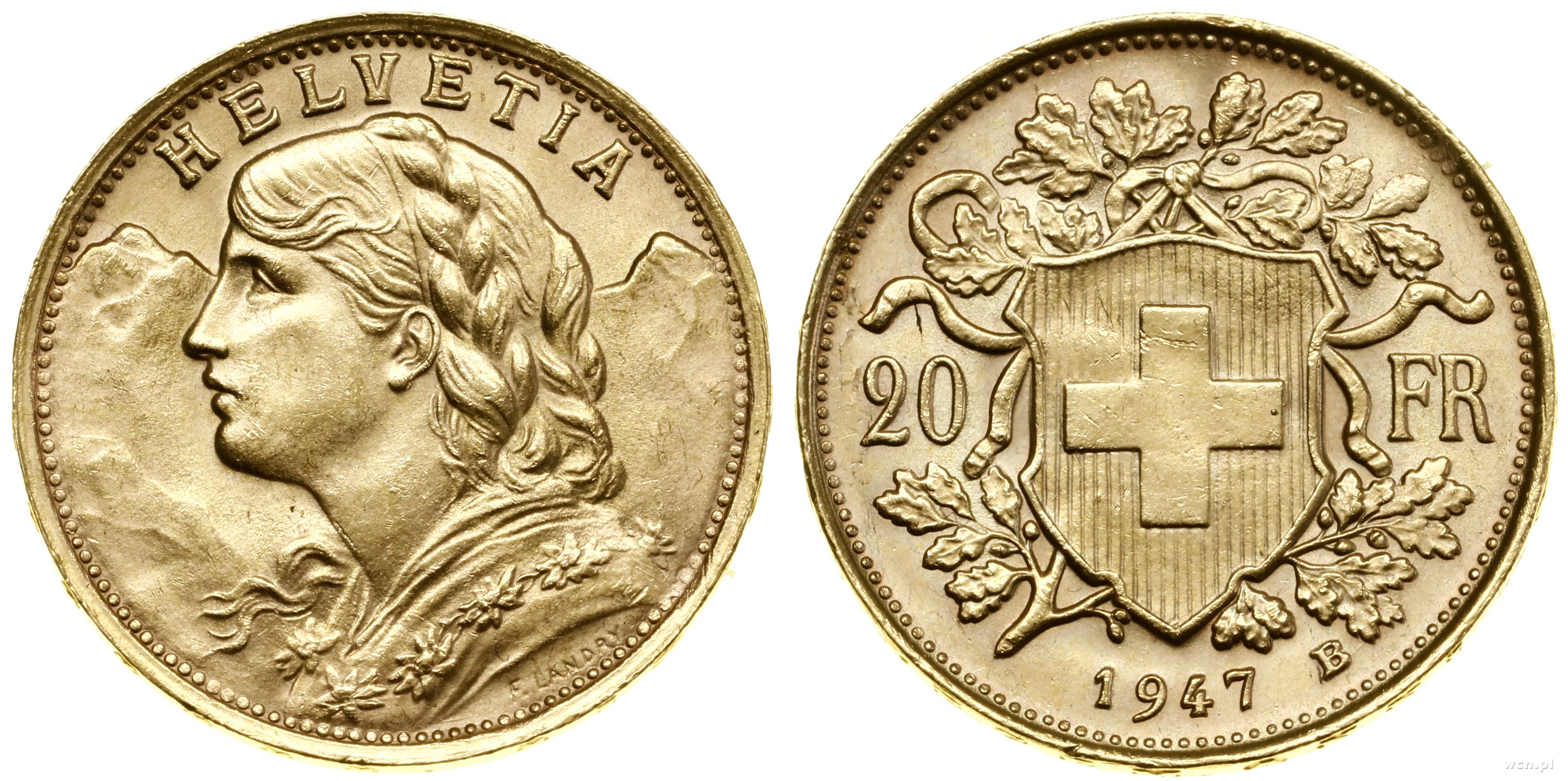 Szwajcaria, 20 franków, 1947 B