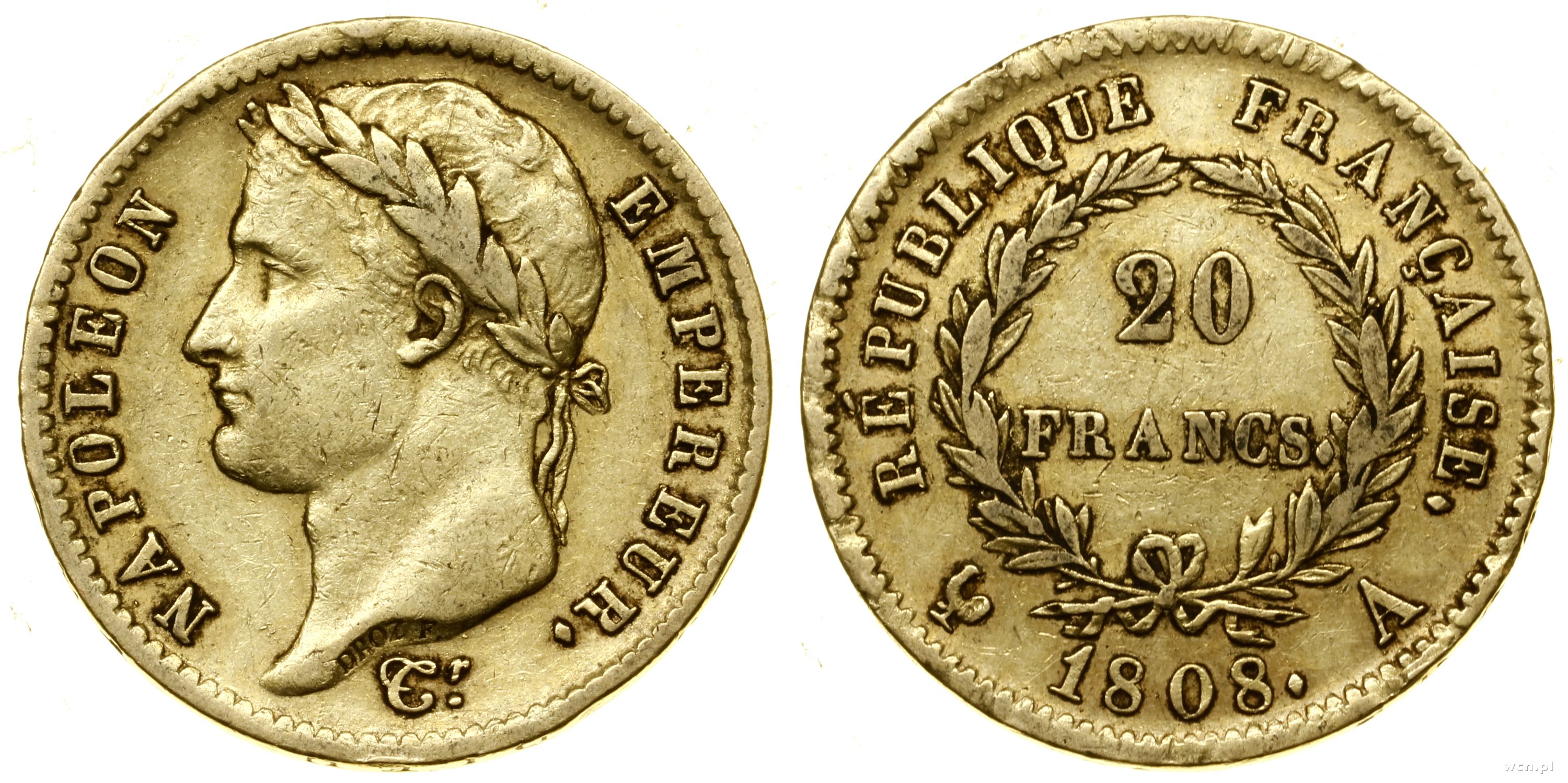 Opis: | Francja - Napoleon Bonaparte (1804–1815), 20 franków, 1808 A, Paryż, głowa w wieńcu laurowym, na rewersie REPUBLIQUE |