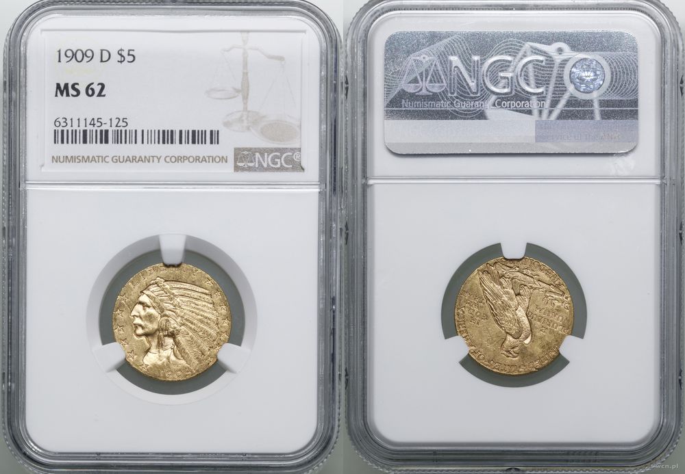 Stany Zjednoczone Ameryki (USA), 5 dolarów, 1909 D