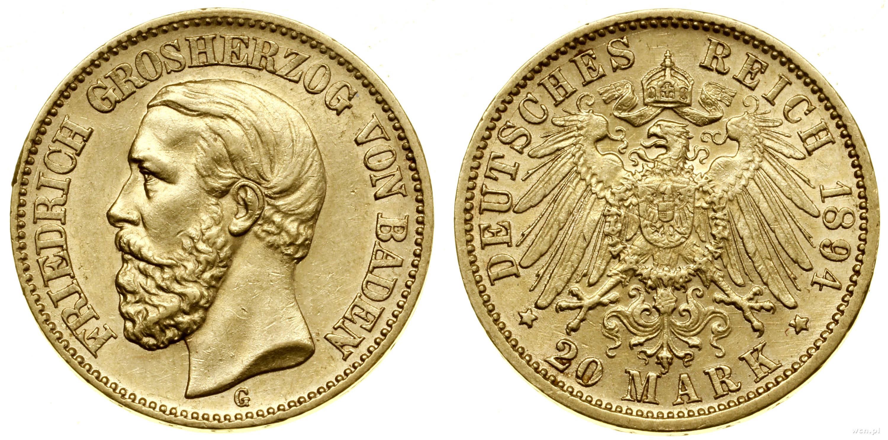 | Opis: | Niemcy - Badenia - Fryderyk I (1856–1907), 20 marek, 1894 G, Karlsruhe, orzeł autorstwa Schultza |