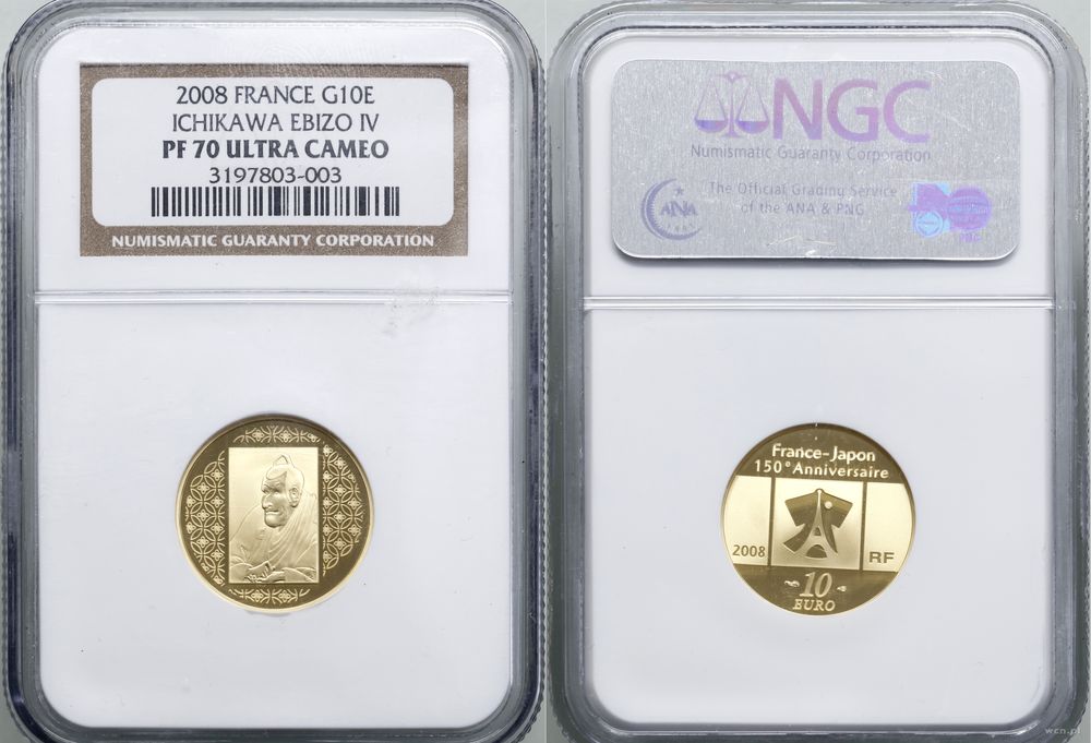 | Opis: | Francja - V Republika (od 1958), 10 euro = 1/4 uncji, 2008, Paryż, 150th Anniversary of Franco-Japanese Relations - Ichikawa Ebizo IV, stemple lustrzane |