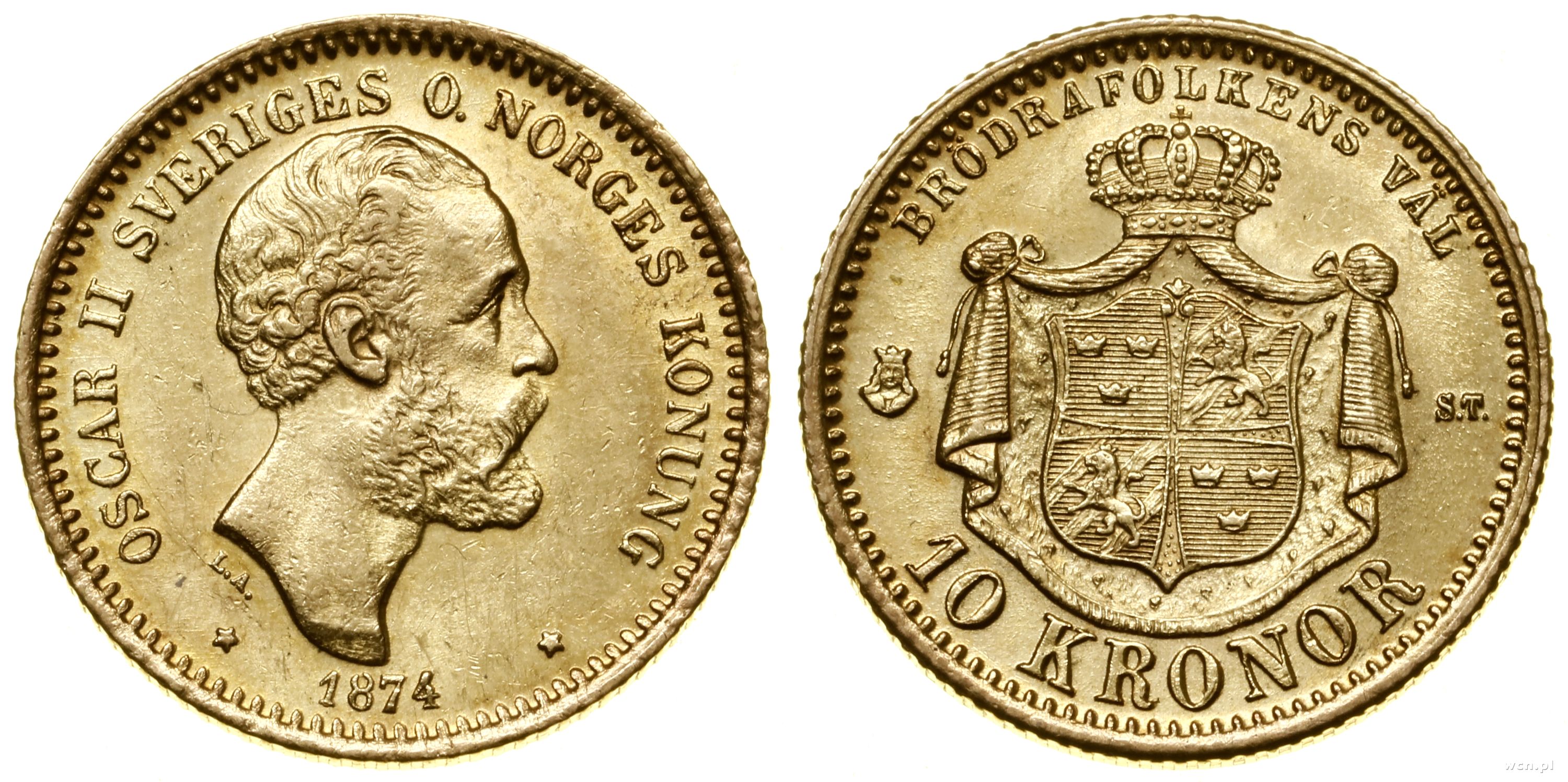 | Opis: | Szwecja - Oskar II (1872–1907), 10 koron, 1874 ST, Kungsholmen (Stockholm) |